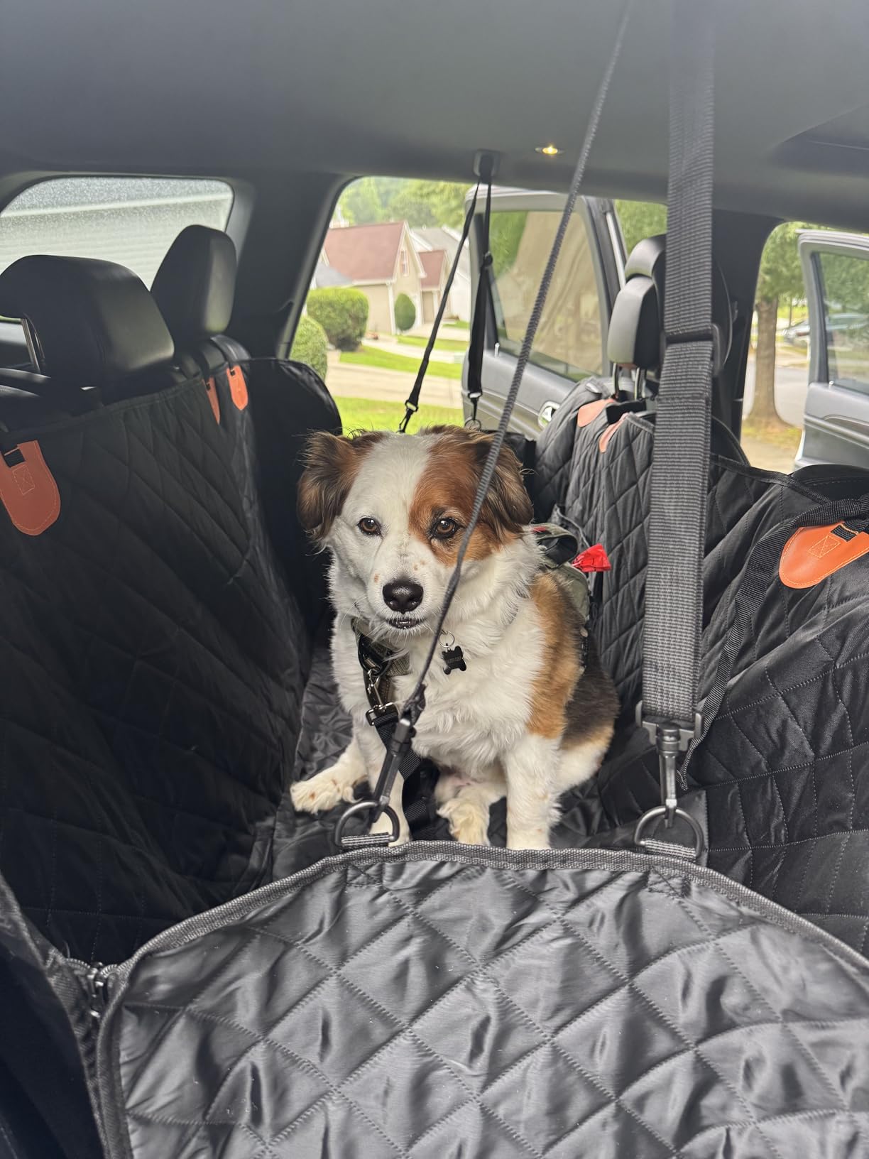Yes! The cover includes Velcro seat belt openings, allowing you to safely buckle your pet’s harness or passengers without removing the cover.