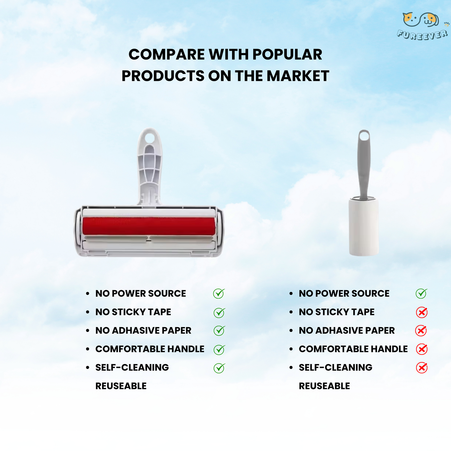 Unlike disposable sticky rollers, FureEver™ uses a premium nylon brush with self-cleaning technology — no power, no refills, just long-lasting convenience.